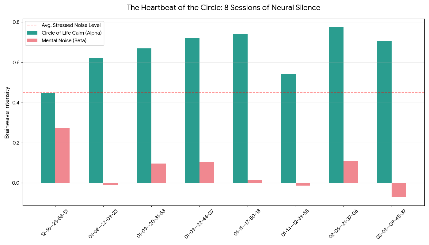 Autonomous Down-Regulation: Our monitoring showed a measurable, systemic shift into Self-Directed Neural Repair within minutes. This confirms that the protocol initiates a rapid reset of the nervous system, allowing for immediate recovery from high-stress "Beta-Redlining" regardless of your physical environment.